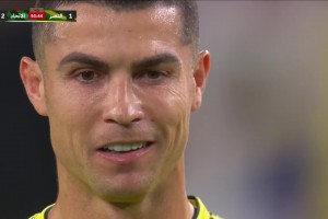胜利补时最后一分钟获得任意球,C罗主罚前念念有词但遗憾没打进