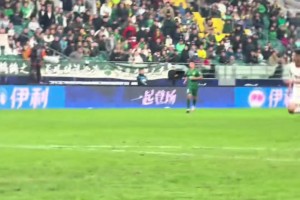 咪咕美女记者为了拍到国安球员进球庆祝,在场边狂奔