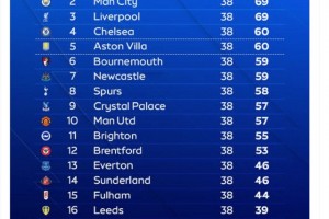 天空体育:Opta预测了赛季英超最终排名