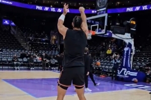 应该问题不大!狄龙赛前还进行了投篮训练 最终决定今天不打