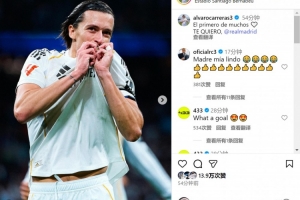 卡雷拉斯晒亲吻队徽照片:很多进球中的第一个,我爱皇马!