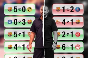 每体对比巴萨两赛季10月战绩:去年5战5胜进21球,今年2胜失10球