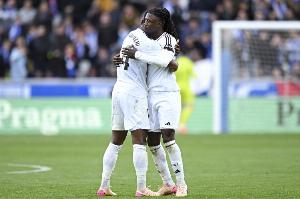 琼阿梅尼本赛季各项赛事代表皇马出战52场,2球1助10张黄牌;卡马文加本赛季各项赛事目前代表皇马出场35次,2球2助7张黄牌。