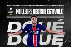 体育资讯6月10日讯 据法甲联赛官方消息,巴黎圣日耳曼从雷恩引进的杜埃被评为2024-2025赛季的法甲最佳引援。在上个夏季转会窗口,巴黎花费了5000万欧元从雷恩签下杜埃。