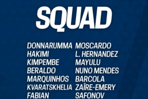 中场:法比安、维蒂尼亚、李刚仁、莫斯卡多、马尤卢、扎伊尔-埃梅里、若奥-内维斯
