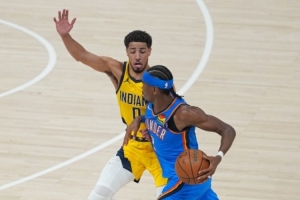 雷霆首战被步行者完成15分翻盘后,第二场比赛吸取教训,球队从第二节开始就牢牢压制对手,始终保持两位数分差,最终主场123-107获胜,扳平大比分。核心亚历山大21中11,轰下34分8助攻5篮板。前两战,亚历山大一共拿到72分,一举打破艾弗森在2001年总决赛前两场的得分纪录。杰伦·威廉姆斯19分5篮板5助攻,切特·霍姆格伦15分6篮板。替补出战的卡鲁索三分球8中4,贡献20分。阿隆·维金斯三分球8中5得到18分。从实力上看,雷霆优势明显,球队也渴望在客场拿到胜利夺回主场优势。