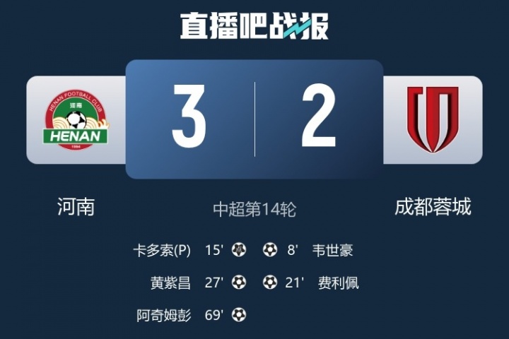 体育资讯06月14日讯 北京时间19:35,中超第14轮,成都蓉城客场2-3不敌河南。