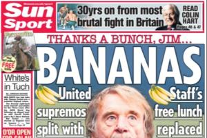 🍌非常感谢你赏的香蕉,吉姆;曼联高层裁撤200人,员工的免费午餐换成水果;红魔计划能削减100万英镑开支,相当于卡塞米罗三周的工资!