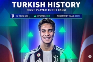 据德转统计,本次身价更新后伊尔迪兹成为历史上身价最高的土耳其球员,历史上首次有土耳其球员德转身价达到5000万欧。