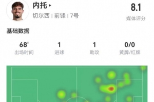 体育资讯2月26日讯 切尔西在本轮英超3-0领先南安普顿,内托本场数据如下: