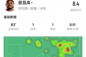 体育资讯2月26日讯 切尔西在本轮英超4-0领先南安普顿,恩昆库本场数据如下: