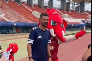 比利亚今天早早起来吃了河南美食,随后来到了河南足球俱乐部主场——郑州航海体育场,和河南U13的小队员们亲切交流,踢球互动,并鼓励孩子们。