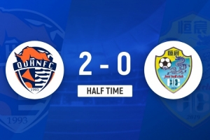 伤停补时2分钟。上半场比赛结束,青岛海牛2-0广西恒宸。