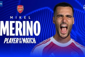 梅开二度!梅里诺当选阿森纳3-0布拉格斯拉维亚一役全场最佳