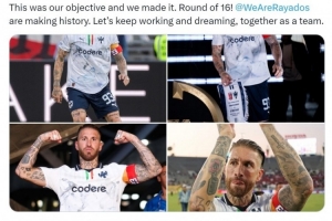 拉莫斯社媒晒出比赛照片,并写道:“这是我们的目标,而我们做到了。晋级16强!蒙特雷正在创造历史,让我们继续努力追逐梦想,团结一致。”
