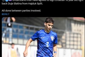 罗马诺写道:“据悉,国米已经达成协议,将从哈伊杜克签下16岁的克罗地亚右后卫杜耶-斯拉蒂纳。”