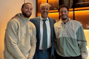 赛后,斯蒂芬-库里晒出了自己和父亲戴尔-库里以及弟弟赛斯-库里的合照。