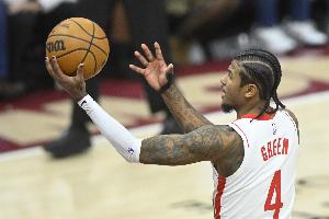 本场比赛,杰伦-格林打了37分4秒,20投9中(三分11中5)、罚球2中2,贡献25分8篮板3助攻,美中不足的是有4次失误,正负值为-6。