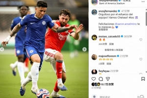 赛后恩佐在个人社媒晒出本场照片,配文写道:“为球队的努力感到骄傲!切尔西加油, 我们进入四分之一决赛!祝贺安塞尔米诺,这是你应得的!”