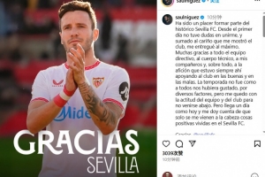 萨乌尔上赛季被马竞外租到塞维利亚,现在已经租期到期归队,他写道:“能够成为历史悠久的塞维利亚足球俱乐部一员是我的荣幸,从加盟第一天起我就毫不犹豫地全身心投入,而俱乐部给予我的关爱更让我竭尽全力。”