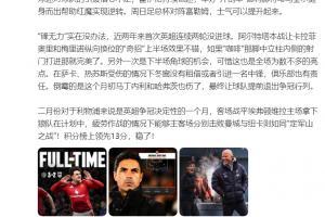 体育资讯2月27日讯 本轮英超,曼联3-2伊镇,曼城1-0热刺,阿森纳0-0森林,利物浦2-0纽卡。