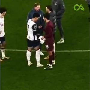比赛结束后,孙兴慜与胡桑诺夫寒暄拥抱致意。