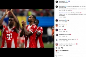 拜仁新援若纳坦-塔在社媒发文写道:“失利让人心痛,尤其是当你觉得球队本值得更进一步的时候。我为成为这支球队的一员感到无比骄傲,下赛季我们会以更强姿态回归。穆西亚拉,我们都与你在一起,兄弟。感谢球迷在本届赛事期间对我们难以置信的支持。”
