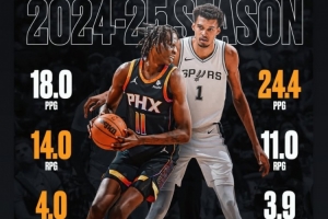 本赛季首发出战时,波尔场均18分14篮板4盖帽2抢断;文班亚马场均24.4分11篮板3.9盖帽1.2抢断。