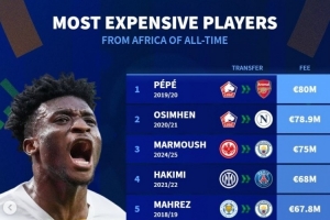 体育资讯7月12日讯 热刺在昨日已经官宣签下西汉姆中场库杜斯,《转会市场》统计显示他也是非洲历史第6贵的球员。