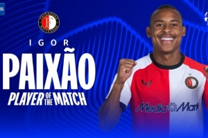 体育资讯2月13日讯 欧冠淘汰赛附加赛首回合,费耶诺德主场1-0战胜AC米兰。本场比赛费耶诺德前锋派修首发出战,贡献制胜进球,当选为全场最佳球员。