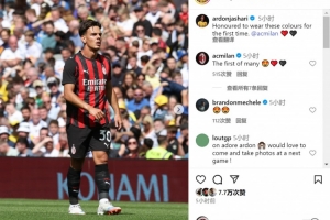 亚沙里更新社媒动态,晒出比赛照片,配文:“很荣幸首次身披米兰球衣参加比赛。”