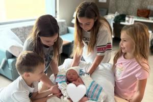 “塞巴斯蒂安-乔治终于来到我们身边!我们满心欢喜地沉浸在与宝宝依偎在一起的温馨时刻。上帝再次赐福于我们,对此我们无比感恩!@海沃德🤍”海沃德的妻子写道。