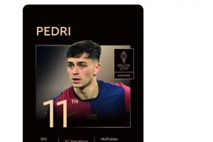 体育资讯09月23日讯 2025年金球奖奖项公布,巴萨中场佩德里排名第11,没有进入前十。