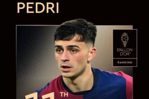 2025年金球奖颁奖典礼在北京时间今天凌晨进行,佩德里仅排在第11位。