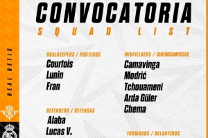 体育资讯2月28日讯 北京时间3月2日1点半,西甲第26轮皇马客战贝蒂斯,皇马公布此役大名单,姆巴佩、莫德里奇在列,巴尔韦德、贝林厄姆等球员缺席。