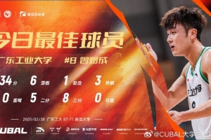 在今日比赛中,广东工大8号曾煜成完美诠释现代篮球双能卫的完美模版,帮助队伍拿下比赛胜利。在进攻端化身无解终结点:全场23投13中,通过1次中距离跳投+8记三分冷箭+4次突破攻筐的立体进攻组合拳,完成34分火力输出。防守端尽显外线压迫性:3次抢断均来自对持球人的预判施压,直接攻防转换扩大优势。最终以12.9的GBPM完整勾勒出攻防两端统治级表现。