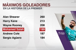有希望吗?萨拉赫打进189球英超历史第四多,差19球追平鲁尼