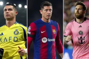 目前在现役球员射手榜上,C罗946球第一,梅西884球第二,莱万700球排在第三。