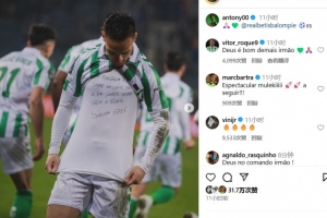 赛后,安东尼更新社媒庆祝自己取得进球和球队获胜:“🙏🏼💚@贝蒂斯 ⚽️🇪🇸”。