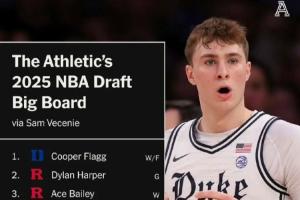 根据最新的榜单,杜克新星库珀-弗拉格依旧占据榜首,来自罗格斯大学的双子星迪伦-哈珀和埃斯-贝利分列二三。