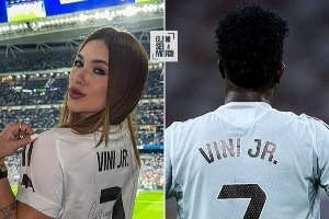 体育资讯10月09日讯 此前巴西记者Leo Dias在节目中爆料,皇马球星维尼修斯在与模特女友弗吉尼亚交往期间疑似和另一名模特聊骚。