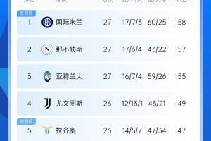 体育资讯03月02日讯 意甲第27轮多场战罢,亚特兰大0-0威尼斯,那不勒斯1-1国际米兰,意甲前三均战平。