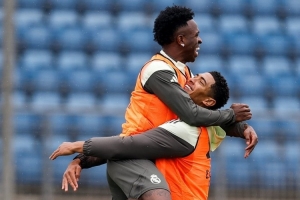 道歉后回归训练!皇马官方晒照:维尼修斯与贝林厄姆激情熊抱