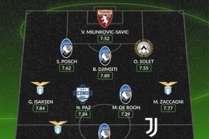 前锋:瓦伦丁-卡斯特拉诺斯(拉齐奥,7.86分)、雷特吉(亚特兰大,7.79分)、穆阿尼(尤文,7.69分)