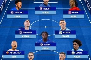 中场:帕尔默(切尔西)、拉维亚(切尔西)、福登(曼城)