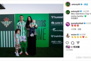 贝蒂斯边锋安东尼在社媒晒出了自己与家人们的合照,配文道:属于我的情人节!我爱你们我的家人!