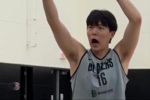 杨瀚森与偶像同框!开拓者记者Casey晒赛前热身视频:老将/新秀