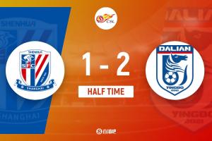 上半场补时5分钟,申花1-2大连英博。