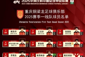 体育资讯3月3日讯 中甲重庆铜梁龙公布新赛季一线队名单,平均年龄23.7岁,重庆本土球员占比29.6%。