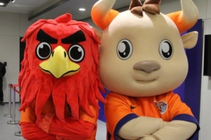 同青岛·共荣耀,在3月1日海牛主场迎战深圳新鹏城的比赛中,不少国信男篮的球迷来到青春足球场为青岛海牛加油助威,国信男篮的吉祥物“雄鹰”也与“犇犇”进行了亲密的互动。